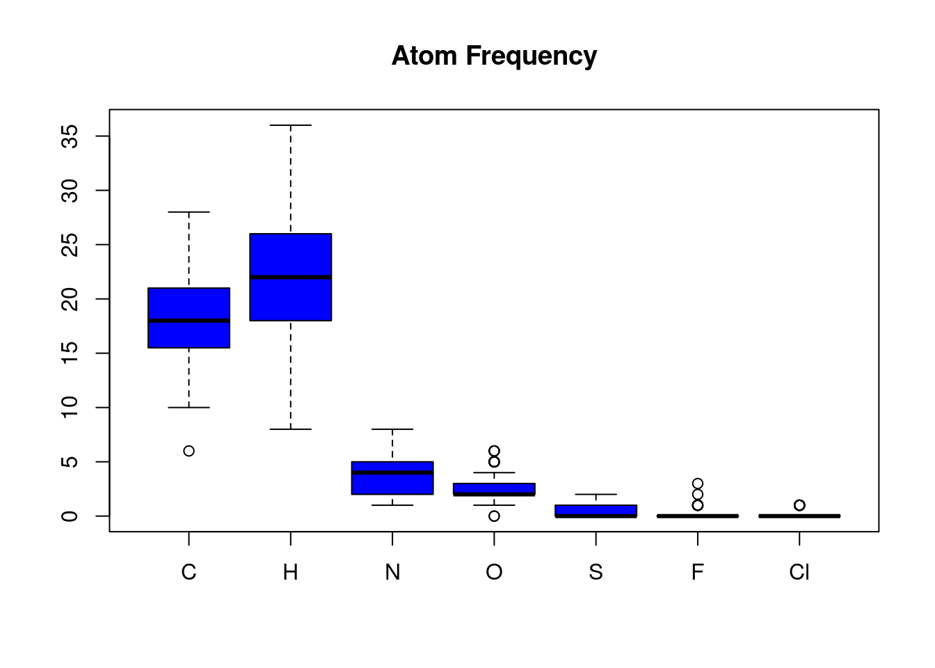 Different types of atoms vary in their frequency across all molecules in an SDFset. The atomCountMA() is used to compute their frequency.