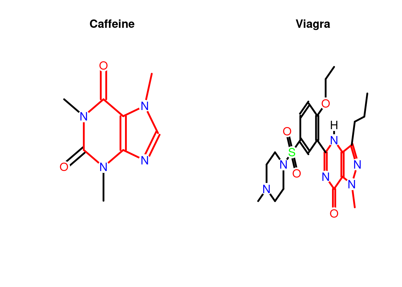 We will use a different SDSFset provided by the fmcsR package and compare between caffeine and viagra